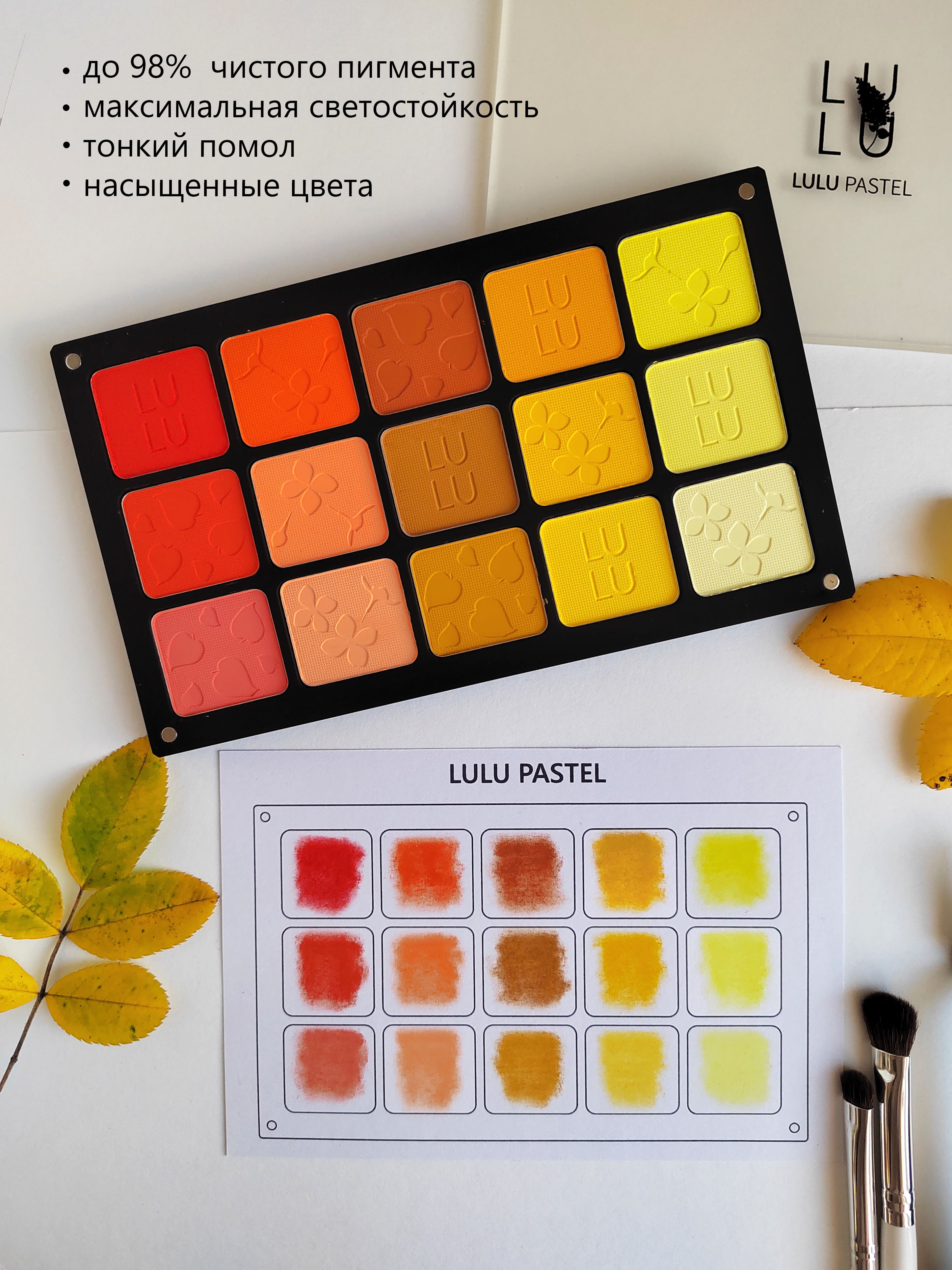 LULU pastel изготовлена из высококачественных художественных пигментов. В состав пастели входит 98-99% чистого пигмента без каких-либо дешевых примесей, что обеспечивает легкость нанесения, растушевки и насыщенность цвета и тона.